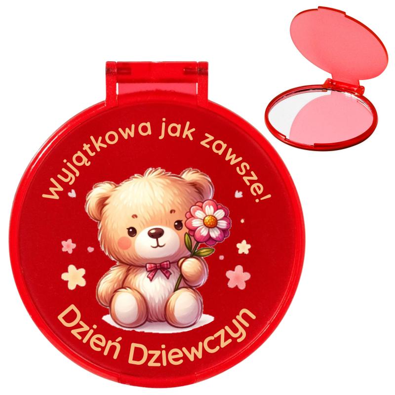 - Urocze, czerwone lusterko z misiem i dedykacją to idealny prezent na Dzień Dziewczyn. Praktyczny i stylowy, z pewnością wywoła uśmiech na twarzy obdarowanej, przypominając jej, jak wyjątkowa jest każdego dnia.