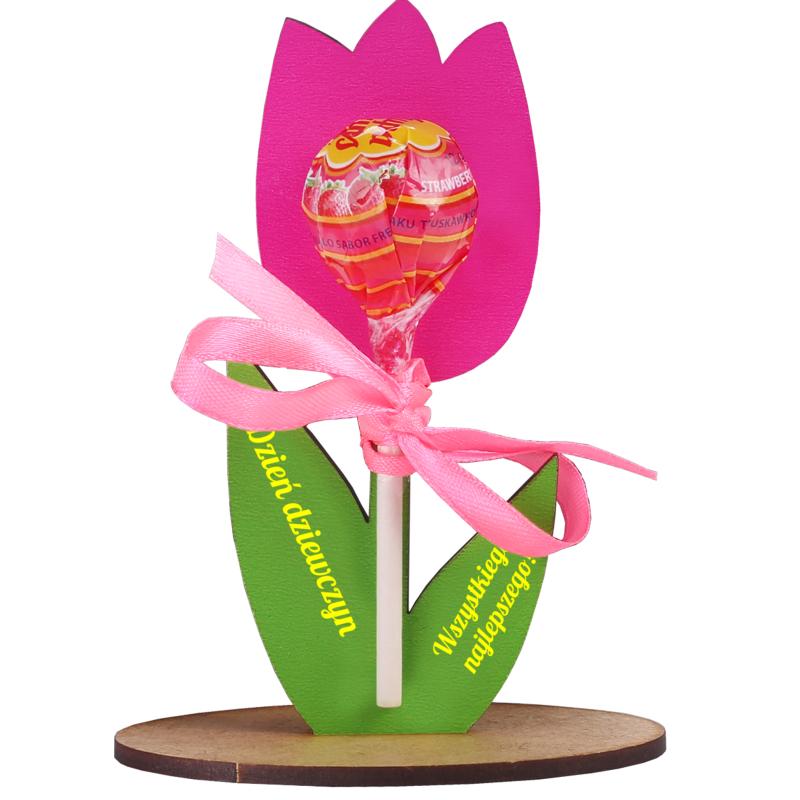 - Statuetka na lizaka z dołączonym lizakiem w zestawie. Uroczy tulipan z różową wstążką idealnie eksponuje słodki upominek, tworząc wyjątkowy prezent na Dzień Dziewczyn. Świetny jako mały, symboliczny gest pełen uroku i smaku. Uwaga! Nie wiążemy kokardki. Smak lizaka wybierany losowo.