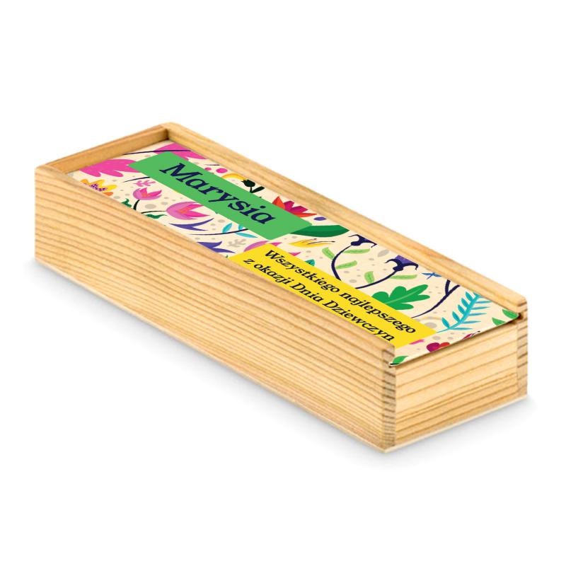 Podaruj bliskiej osobie nie tylko prezent, ale też świetną zabawę! Klasyczna gra domino w eleganckim drewnianym pudełku z personalizacją to doskonały upominek na Dzień Dziewczyny. Sprawdzi się zarówno dla dzieci, jak i dorosłych, dostarczając radości i integrując przy wspólnej rozgrywce.