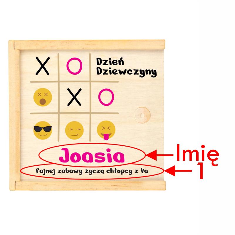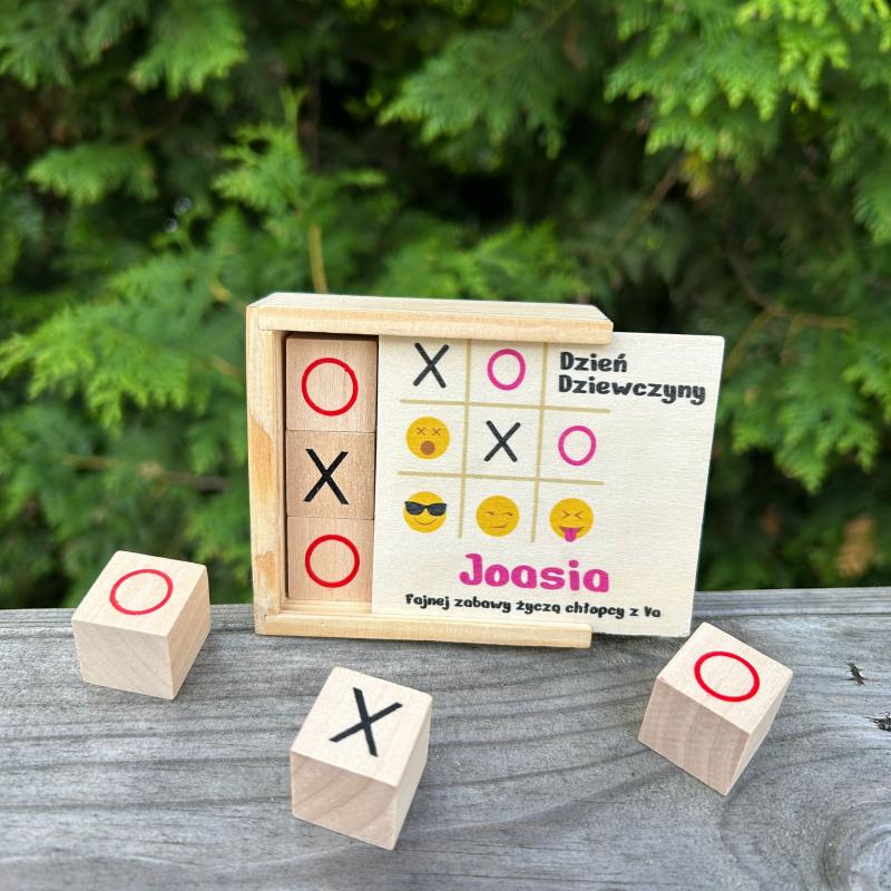 Drewniana gra kółko i krzyżyk z imieniem – prezent na Dzień Dziewczyny 11 października