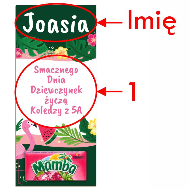 Kolorowy, personalizowany upominek z gumą Mamba to świetny sposób, by w prosty i słodki sposób obdarować koleżankę z klasy z okazji jej święta. Nadruk z imieniem dziecka i podpisem klasy nadaje prezentowi wyjątkowego charakteru. Idealny na Dzień Dziewczynek.