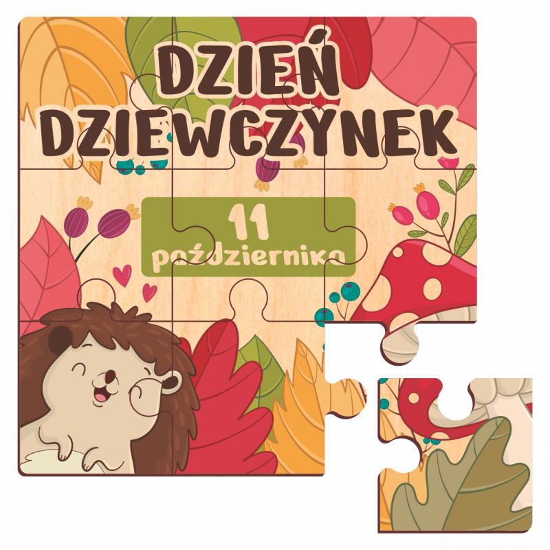 - Drewniane puzzle z napisem „DZIEŃ DZIEWCZYNEK 11 PAŹDZIERNIKA”, które zapewni godziny wciągającej rozrywki.