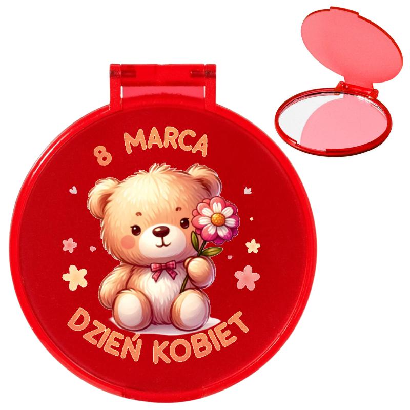 - Urocze, czerwone lusterko z misiem i dedykacją to idealny prezent na Dzień Kobiet. Praktyczny i stylowy, z pewnością wywoła uśmiech na twarzy obdarowanej, przypominając jej, jak wyjątkowa jest każdego dnia.