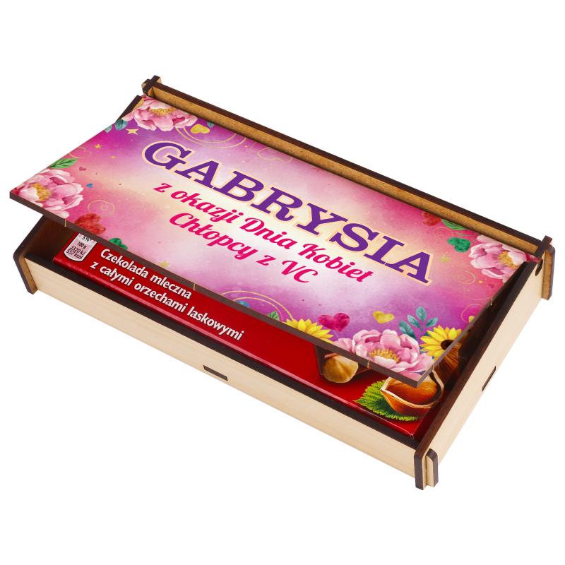 Pudełko na czekoladę z imie dziewczyny prezent na Dzień Kobiet