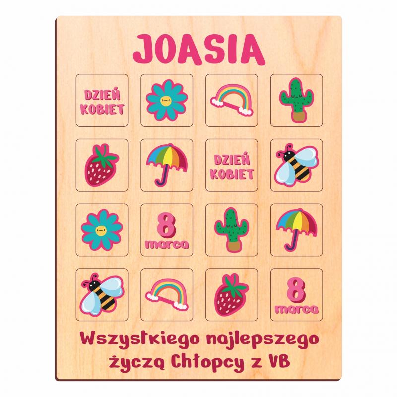 Drewniana gra memory z imieniem na Dzień Kobiet