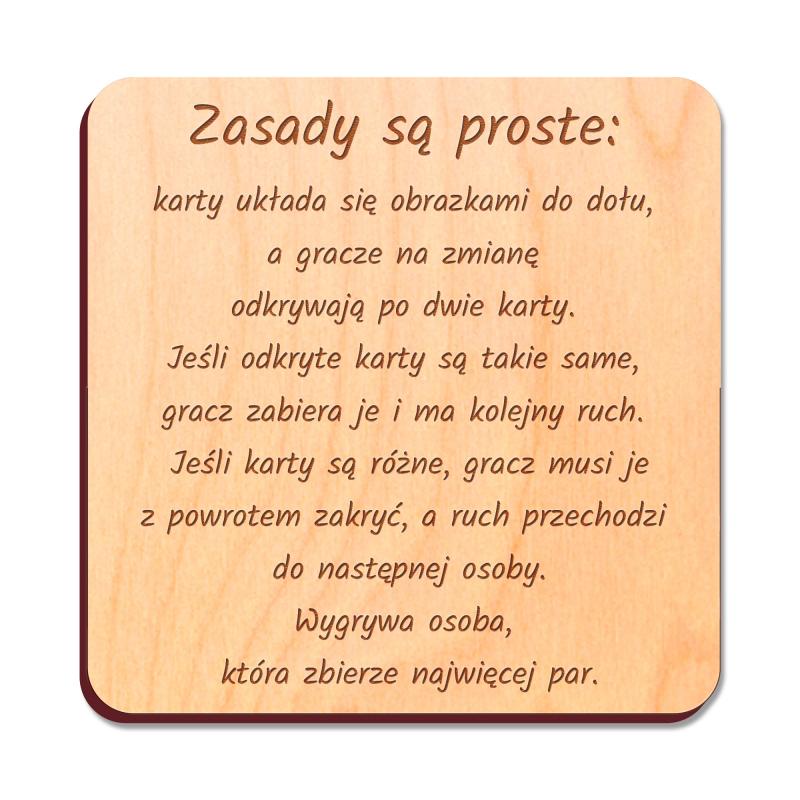 - 10 par drewnianych kart z wygrawerowanymi grafikami