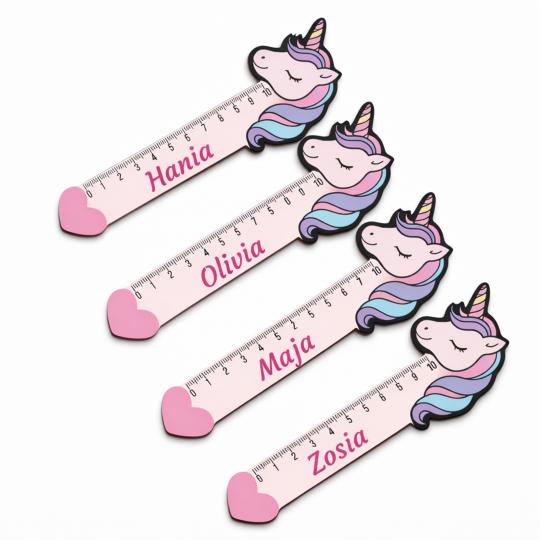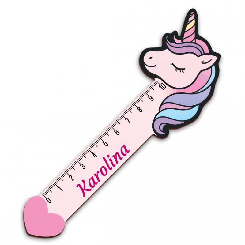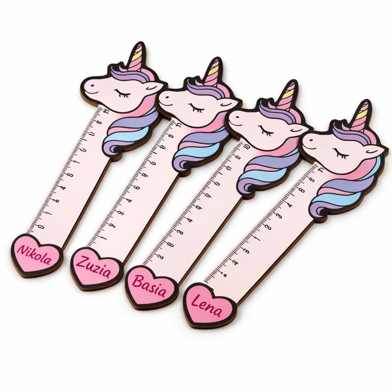 Personalizowana linijka z imieniem z motywem jednorożca to uroczy i praktyczny upominek dla dziewczynek na Dzień Kobiet.