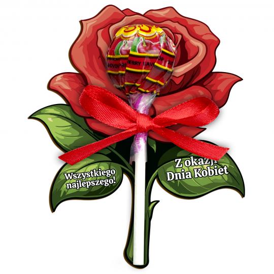 Róża na lizaka Dzień Kobiet słodki upominek szkolny