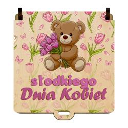 Motyw misia z bukietem tulipanów oraz napis Słodkiego Dnia Kobiet nadają całości radosny i wyjątkowy charakter.