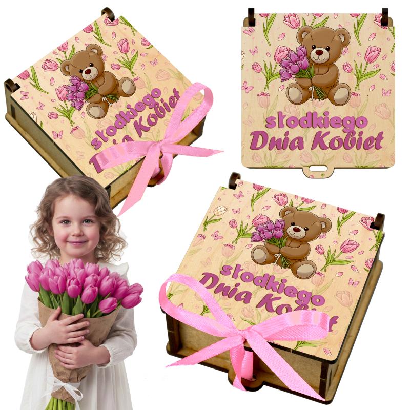 Drewniane pudełko na słodycze Dzień Kobiet upominek