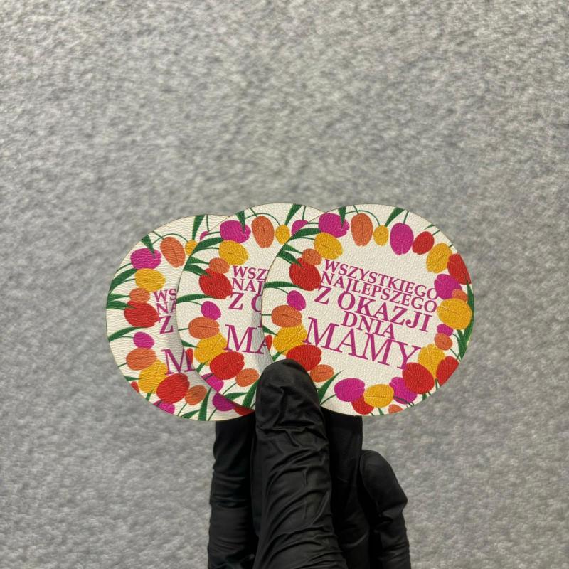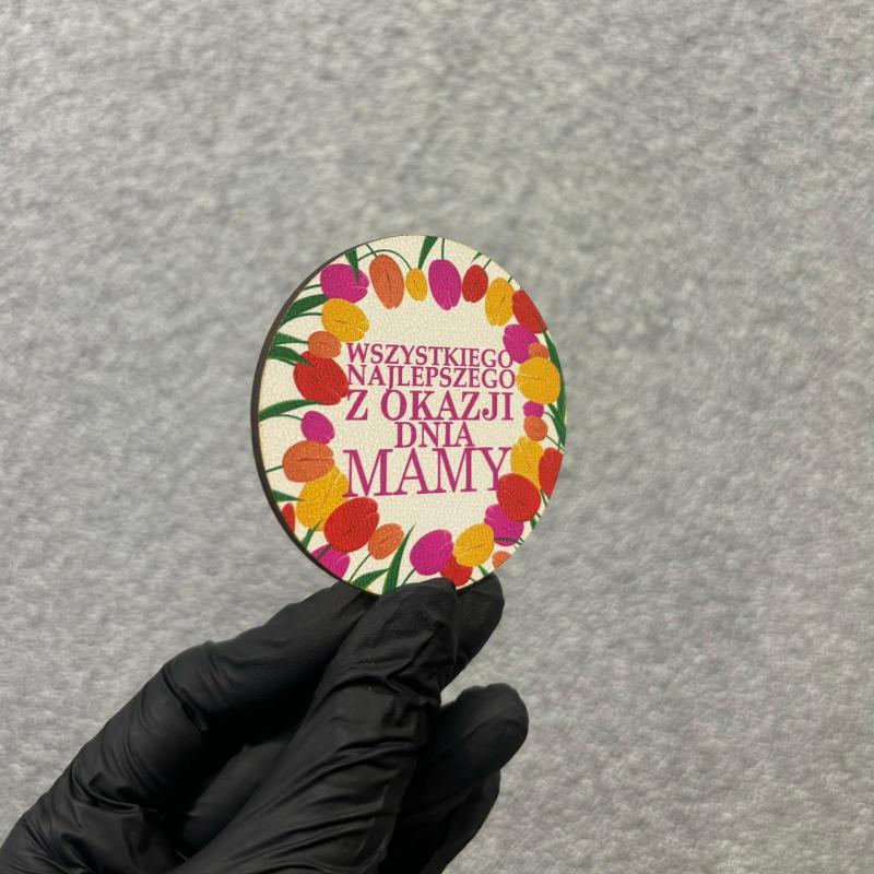 Drewniany okrągły magnes na dzień mamy z życzeniami