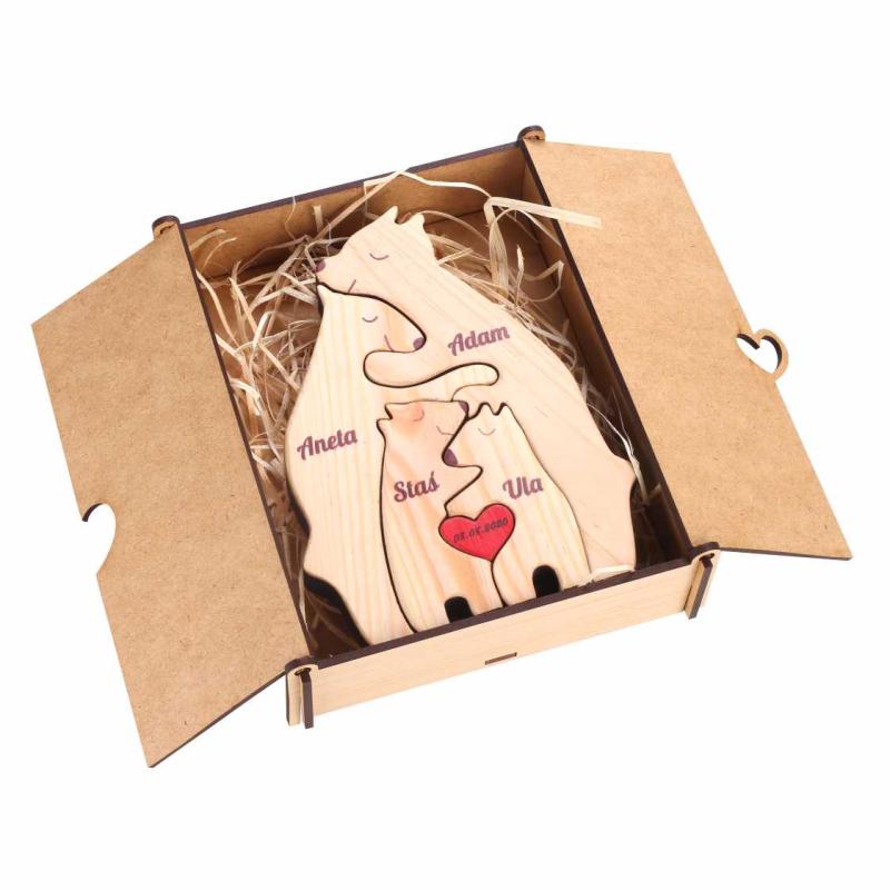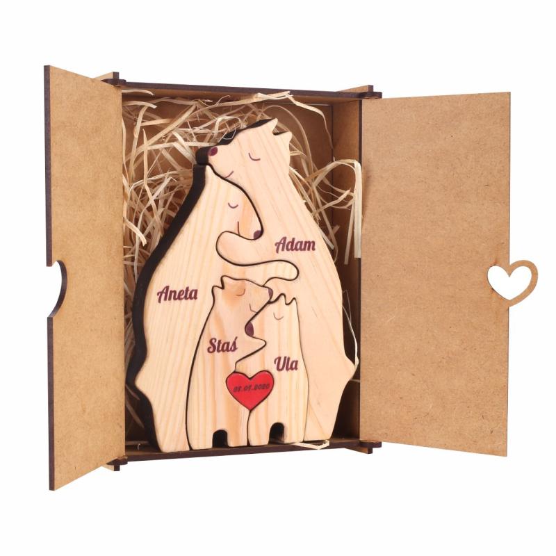 Pudełko na drewniane puzzle misie z okazji Dnia Mamy