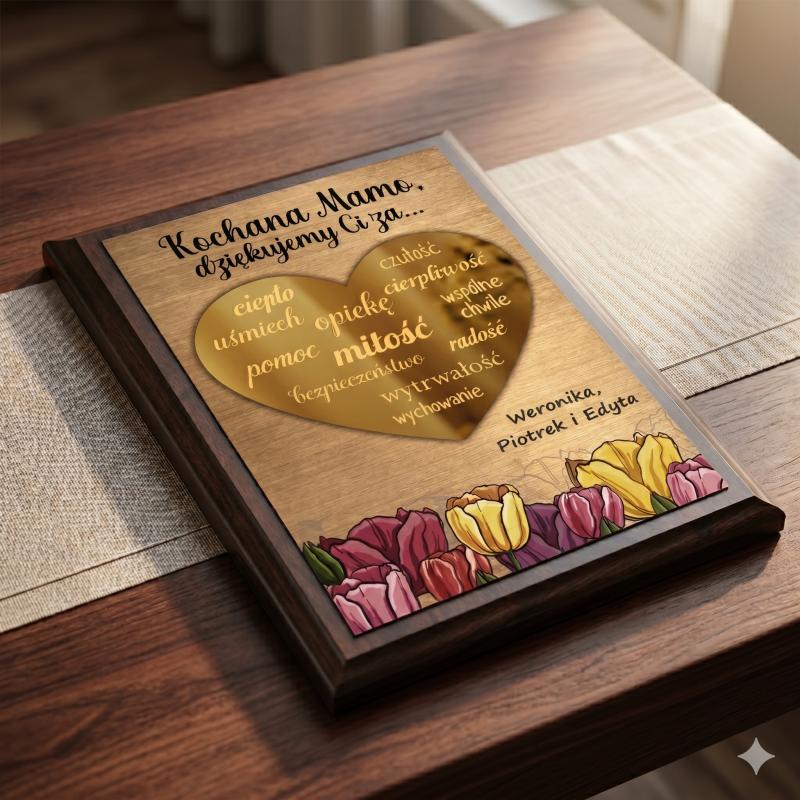 Z personalizowaną dedykacją, ramka staje się jeszcze bardziej osobista i pełna emocji. To idealny sposób na wyrażenie wdzięczności i miłości do mamy, nie tylko na Dzień Mamy, ale także na inne wyjątkowe okazje. Elegancka forma, połączona z ciepłymi słowami, sprawia, że ten prezent na pewno wywoła uśmiech na twarzy obdarowanej osoby.