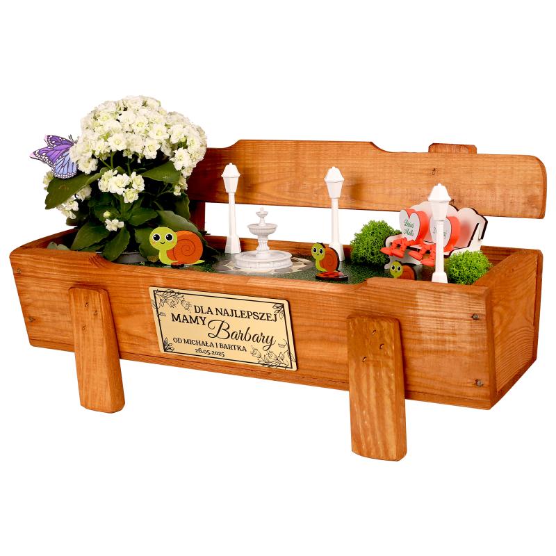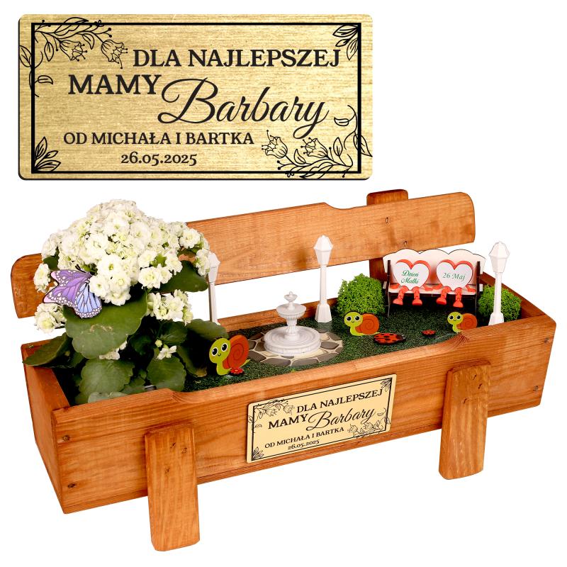 Szukasz niepowtarzalnego prezentu na Dzień Matki, który połączy piękno, funkcjonalność i sentymentalną wartość? Ta oryginalna doniczka w formie drewnianej ławeczki z personalizowaną złotą tabliczką to wyjątkowa propozycja, która z pewnością wywoła wzruszenie u każdej mamy.