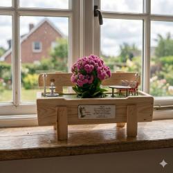 Szukasz niepowtarzalnego prezentu na Dzień Matki, który połączy piękno, funkcjonalność i sentymentalną wartość? Ta oryginalna doniczka w formie drewnianej ławeczki z personalizowaną złotą tabliczką to wyjątkowa propozycja, która z pewnością wywoła wzruszenie u każdej mamy.
