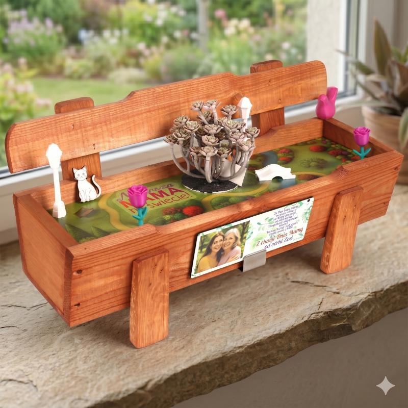 Szukasz niepowtarzalnego prezentu na Dzień Matki, który połączy piękno, funkcjonalność i sentymentalną wartość? Ta oryginalna doniczka w formie drewnianej ławeczki z personalizowaną tabliczką to wyjątkowa propozycja, która z pewnością wywoła wzruszenie u każdej mamy.
