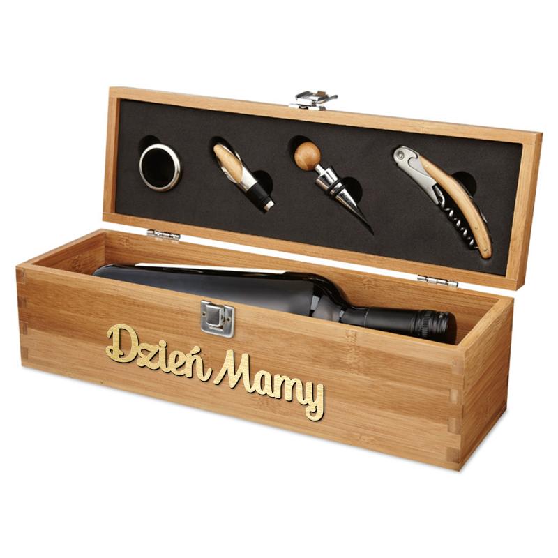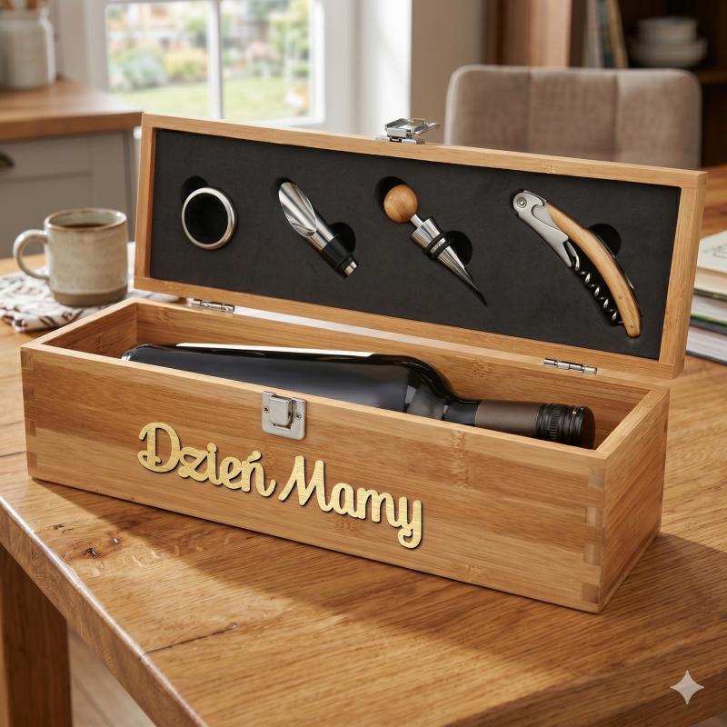 Skrzynka na wino z akcesoriami elegancki prezent na Dzień Mamy
