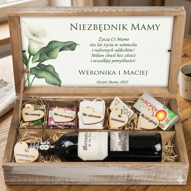Dzięki naszej ofercie dodatkowych produktów możesz idealnie dopasować prezent do każdej przegródki skrzynki. Wybierz to, co najlepiej pasuje do Twojej personalizacji, i stwórz niezapomniany zestaw dla mamy!