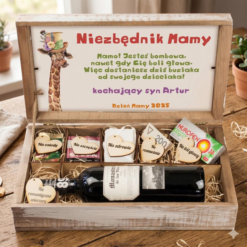 Dzięki naszej ofercie dodatkowych produktów możesz idealnie dopasować prezent do każdej przegródki skrzynki. Wybierz to, co najlepiej pasuje do Twojej personalizacji, i stwórz niezapomniany zestaw dla mamy!