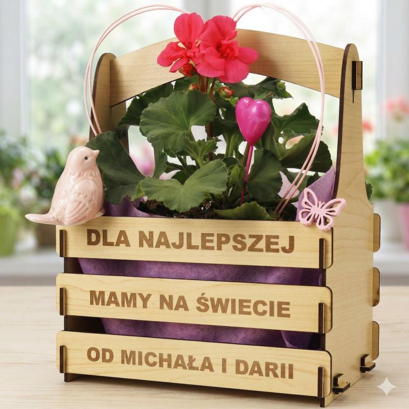 Nosidełko-doniczka na kwiaty z dedykacją to prezent, który nie tylko będzie pięknie wyglądał, ale także zostanie z mamą na długo. Dzięki swojej trwałości i ponadczasowej estetyce, będzie to upominek, który nie tylko zaskoczy, ale także będzie przypomnieniem o ważnym dniu przez wiele lat. Jest to doskonały sposób na wyrażenie swojej miłości i wdzięczności wobec mamy w sposób, który będzie miał wartość sentymentalną.