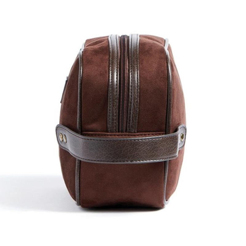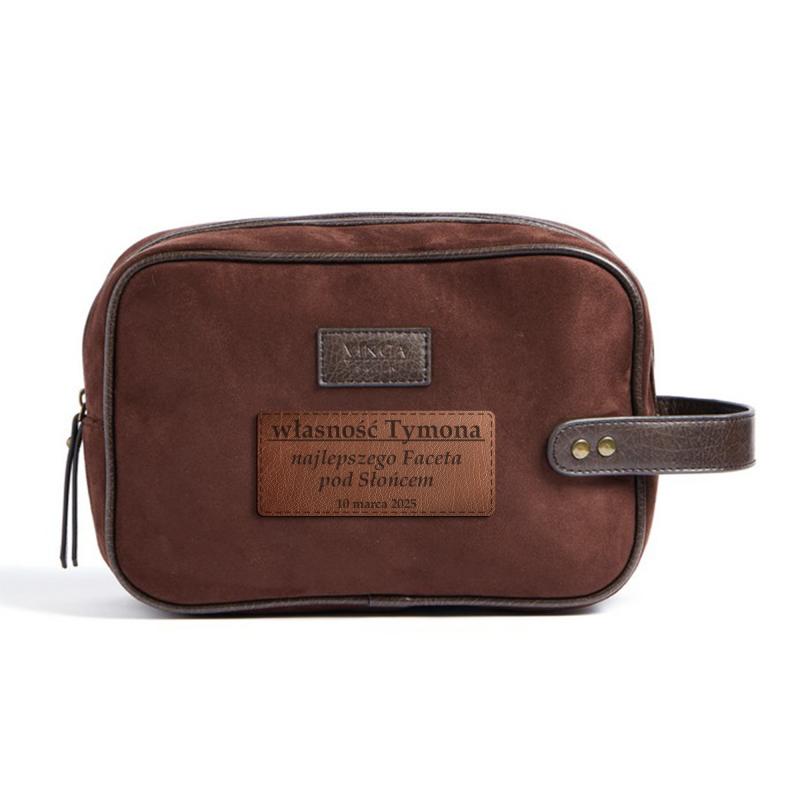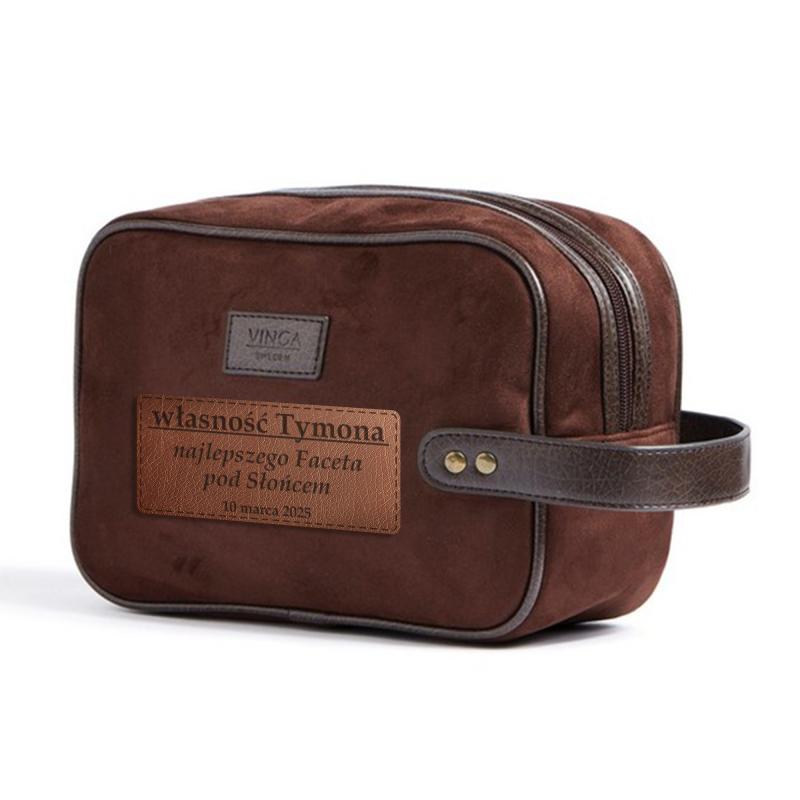 Stylowy i praktyczny dodatek dla mężczyzn, którzy cenią elegancję i funkcjonalność. Wykonana z wysokiej jakości imitacji zamszu, z detalami ze skóry PU i mosiądzu, ta kosmetyczka łączy klasyczny wygląd z trwałością. Dzięki personalizowanej naszywce staje się unikalnym prezentem, idealnym na Dzień Mężczyzn, urodziny, rocznicę czy inną wyjątkową okazję.