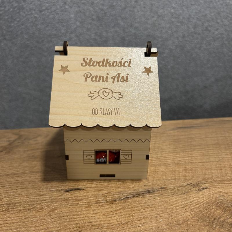 Prezent z okazji Dnia Nauczyciela Domek na cukierki z dedykacją