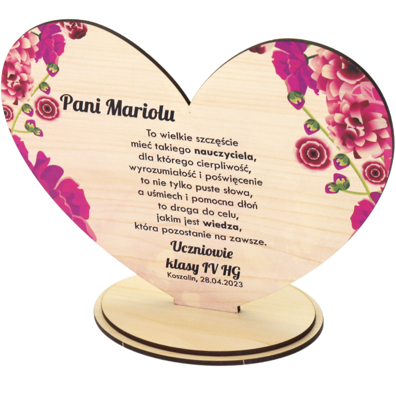 Statuetka ma kształt serca, co czyni ją idealnym dodatkiem do wystawy w domu czy na stole nauczyciela. To niezwykła pamiątka, która zachowa piękne wspomnienia na wiele lat.