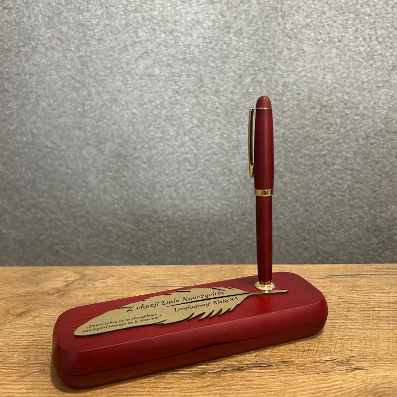 Zestaw zapakowany jest w eleganckie drewniane etui, które nie tylko chroni zawartość, ale również stanowi estetyczną ozdobę na biurku. Na etui można umieścić dedykację lub personalizowany grawer, co czyni ten prezent jeszcze bardziej wyjątkowym. Dzięki eleganckiemu wzornictwu i wysokiej jakości wykonania, ten zestaw jest doskonałym wyrazem wdzięczności i uznania dla nauczyciela, który wnosi wartościową wiedzę i wsparcie w życie swoich uczniów.