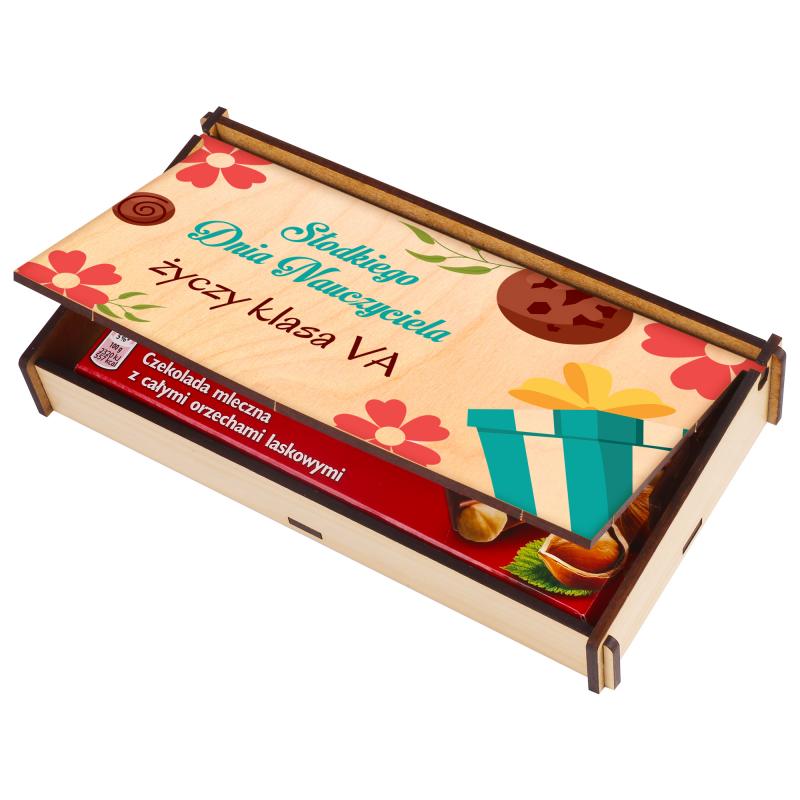 Drewniane pudełko na czekoladę prezent na Dzień Nauczyciela