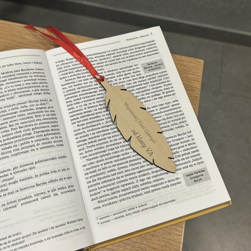 Zakładka drewniana pióro z dedykacją prezent dla nauczyciela