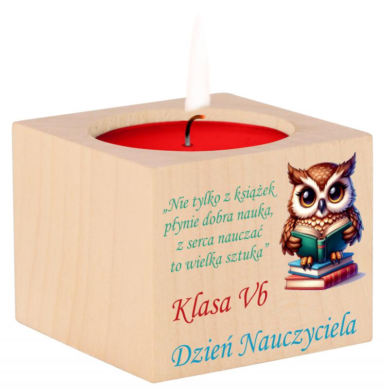 Drewniany świecznik Nauczyciela upominek okazji Dnia Nauczyciela