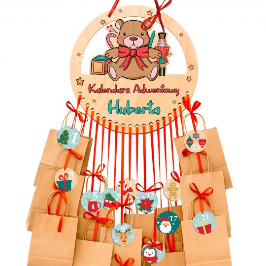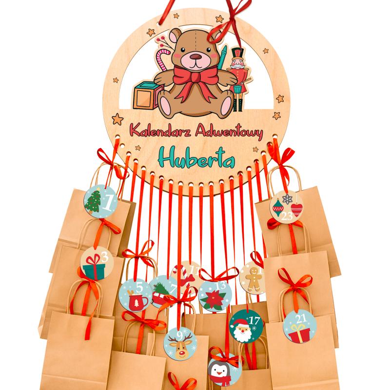 Ten drewniany kalendarz adwentowy to urocza i personalizowana dekoracja, która pozwala stworzyć własny, wyjątkowy sposób na odliczanie do Świąt. W zestawie otrzymujesz drewnianą bazę z imieniem oraz czerwoną wstążkę do zawieszenia, dzięki czemu kalendarz jest od razu gotowy do powieszenia na ścianie.