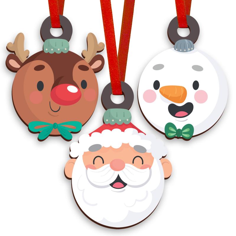 Elegancki zestaw sześciu drewnianych zawieszek w klimacie vintage. Idealne na choinkę, prezenty lub dekoracje wnętrza. Trwałe i stylowe, tworzą klasyczny świąteczny nastrój.