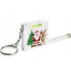 Kompaktowy brelok z miarką 1 m i świątecznym nadrukiem. Praktyczny i zabawny dodatek na co dzień.