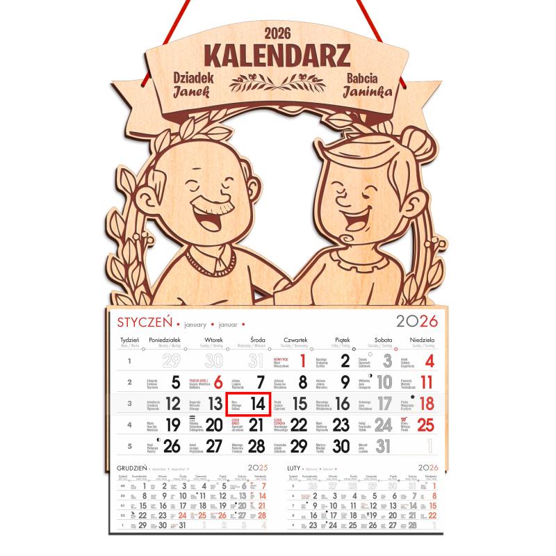 Wiszący kalendarz 2026 z imionami prezent na Dzień Babci Dziadka