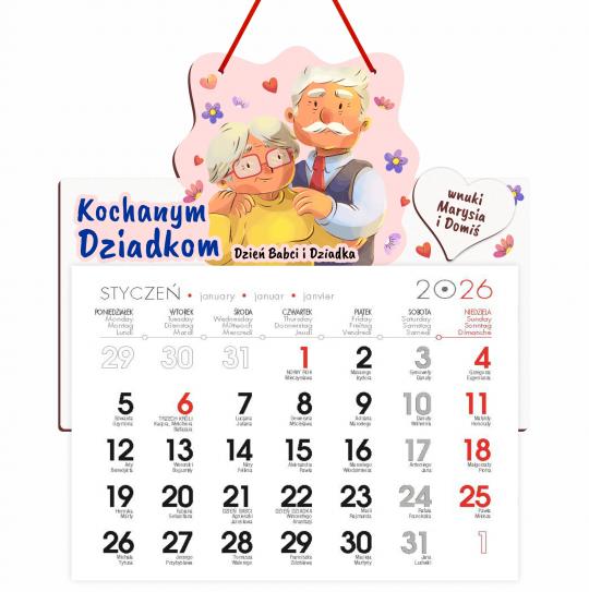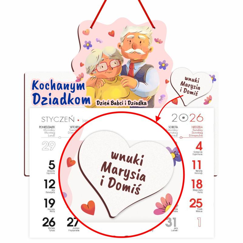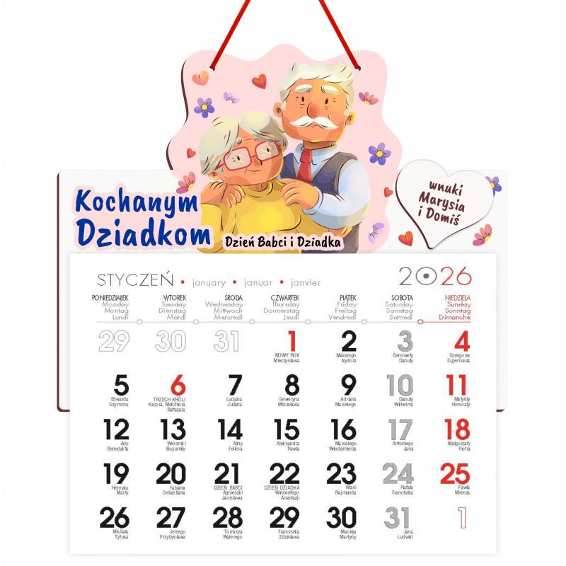 Dzień Babci i Dziadka to wyjątkowa okazja, by wyrazić swoją miłość i wdzięczność za wszystko, co nasi dziadkowie dla nas zrobili. Warto w tym dniu podarować coś naprawdę osobistego i pełnego emocji, co będzie przypominać o naszej więzi przez cały rok. Kalendarz 2026 wiszący z grawerowanymi imionami to idealny wybór na tę specjalną okazję. Jest to prezent, który łączy funkcjonalność z unikalnym charakterem, dzięki możliwości personalizacji.