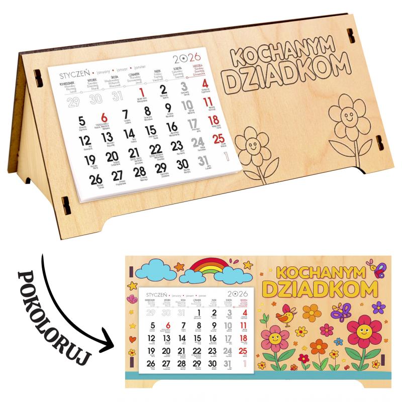 Kalendarz biurkowy do kolorowania prezent dla Dziadków 2026