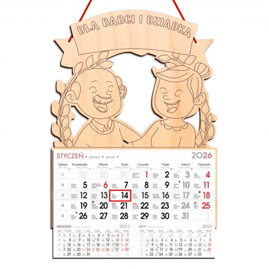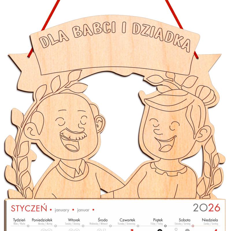 Kalendarz można z łatwością zawiesić dzięki dołączonej wstążce, a prostokąciki z imionami wnuków oraz papierowe kalendarium są przygotowane do samodzielnego, szybkiego montażu. Całość tworzy jedyny w swoim rodzaju upominek, idealny na Dzień Babci, Dzień Dziadka lub świąteczną okazję.