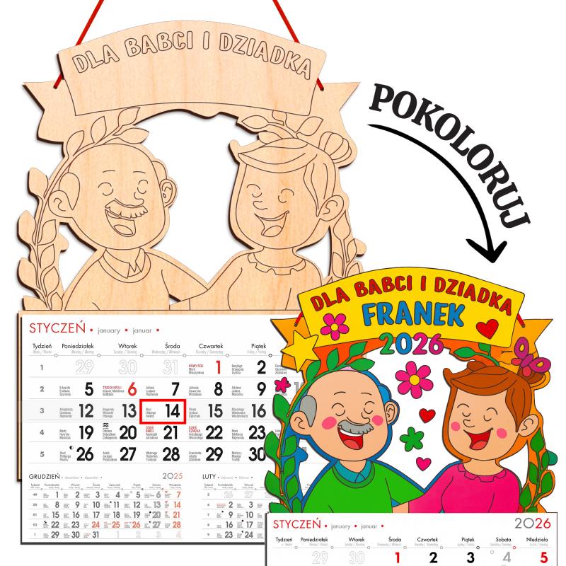 Kalendarz 2026 do kolorowania prezent dla Babci i Dziadka