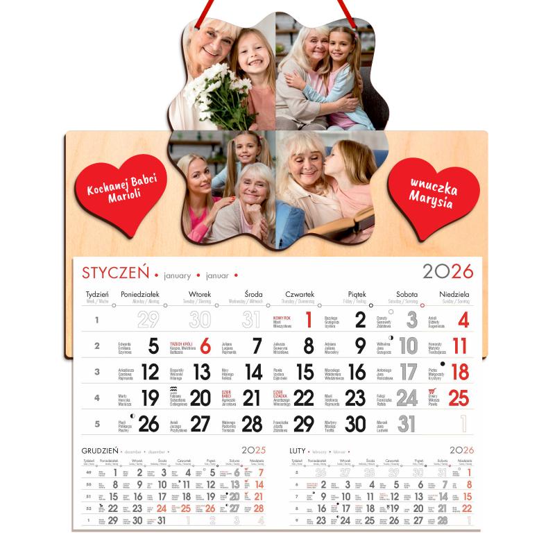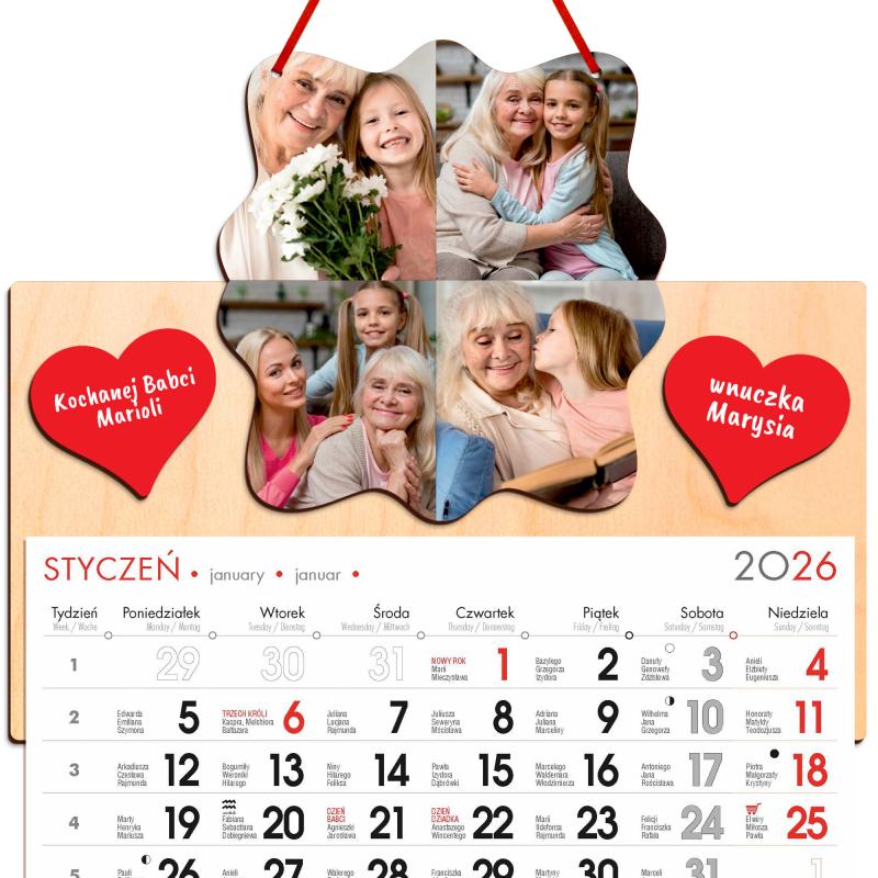 Drewniany foto kalendarz 2026 dla Babci i Dziadka z imieniem