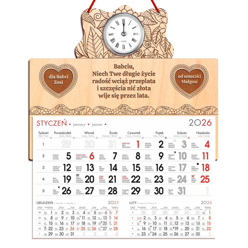 Kalendarz 2026 dla Babci i Dziadka z zegarem i grawerem
