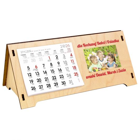 Kalendarz biurkowy z personalizacją to piękny i praktyczny prezent dla Babci i Dziadka, który umili każdy dzień roku. Obok czytelnego kalendarium znajduje się miejsce na ulubione zdjęcie wnuków oraz dedykacja, dzięki czemu prezent nabiera wyjątkowego, rodzinnego charakteru.