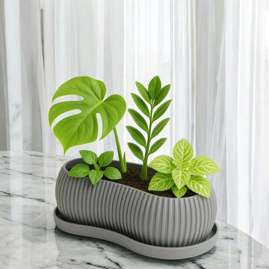 Wyjątkowa doniczka w nowoczesnym designie z funkcjonalnym podstawkiem to doskonały wybór na prezent lub do dekoracji wnętrz.