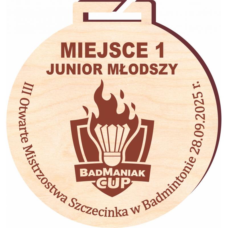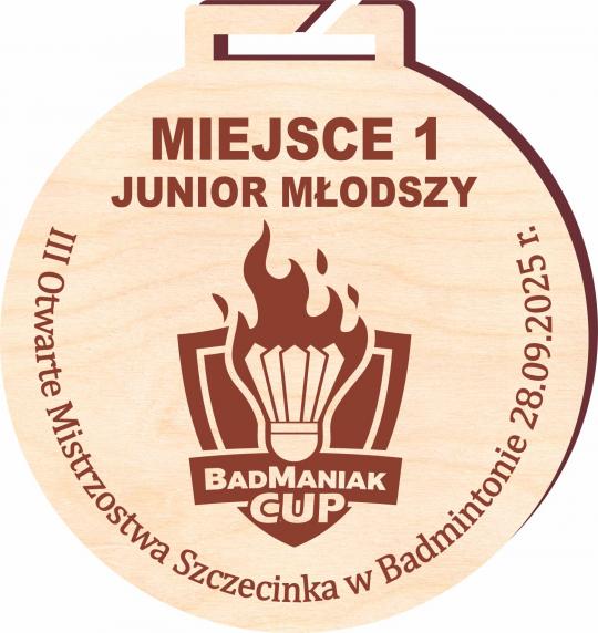 Medal wykonany jest w formie graweru na sklejce, co nadaje mu naturalny, drewniany charakter. Ze względu na technikę wykonania nie ma możliwości zmiany koloru graweru ani nadruku – barwa zależy od procesu wypalania drewna, dzięki czemu każdy egzemplarz może nieznacznie różnić się od siebie, zachowując swój unikalny wygląd.