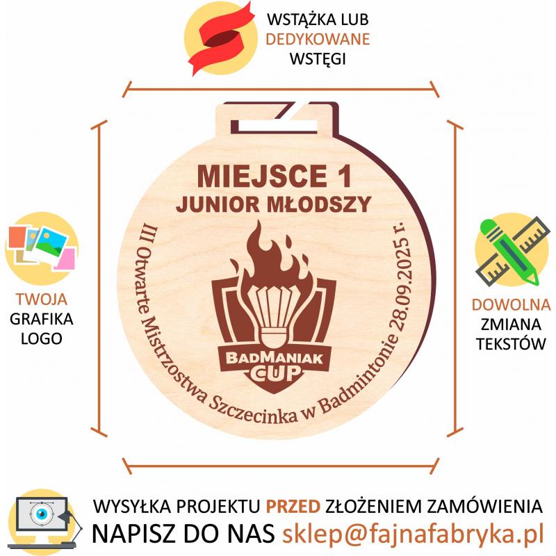 Na medalu możemy umieścić dowolny tekst, grafikę a także logo - dzięki czemu stanie się wyjatkową i spersonalizowaną nagrodą.