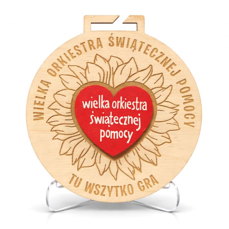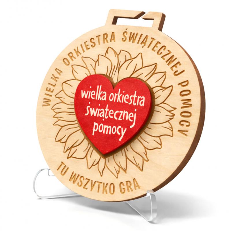 Medal WOŚP drewniany eco czerwone serduszko grawerowany