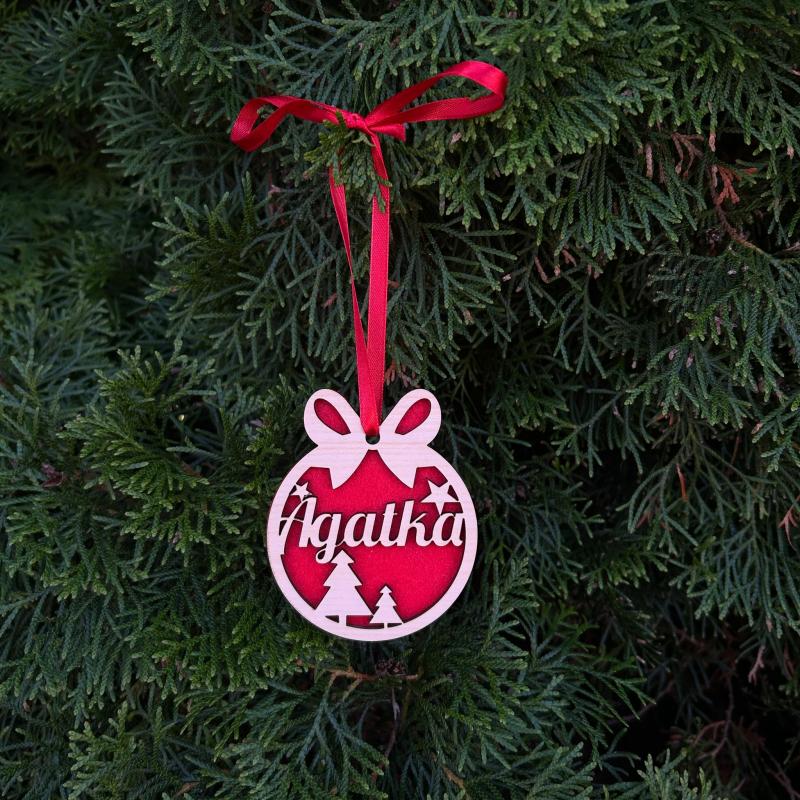 Przedstawiamy bombkę z indywidualnym imieniem, które wykonamy dla Ciebie. Znajdzie się również miejsca na krótki tekst.