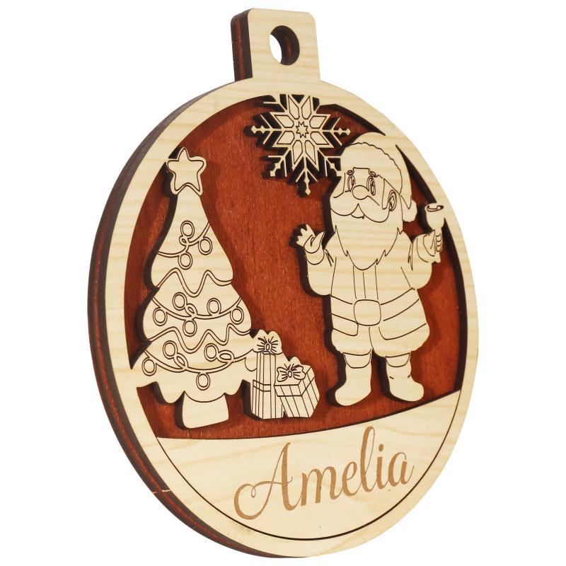 Urocza bombka zawieszka to nie tylko ozdoba na Boże Narodzenie, to także wyjątkowa pamiątka, którą możesz spersonalizować, dodając grawerowane imię. Bombka prezentuje Świętego Mikołaja w otoczeniu choinki, tworząc magiczny motyw świąt Bożego Narodzenia. To niezwykła ozdoba, która wnosi radość i urok do Twojego świątecznego wystroju.