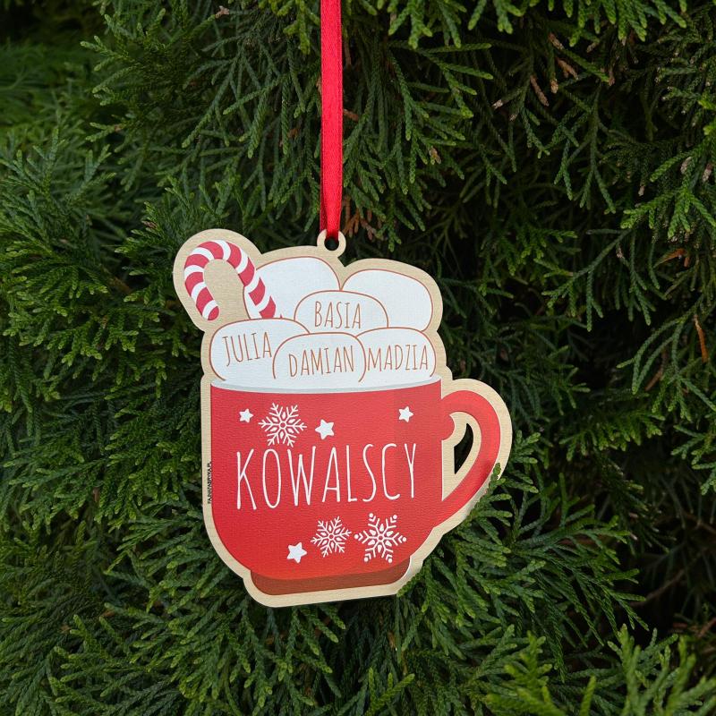 Bombka zawieszka kubek czekolady z piankami i imionami na choinkę