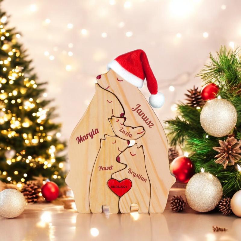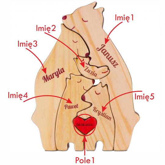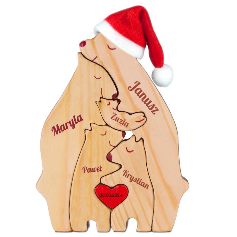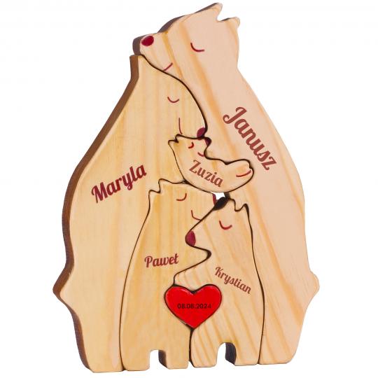 Spersonalizowane drewniane misie z rodzinna pamiątkowym prezentem dla rodziny. Puzzle z 5 niedzwiadkami.
